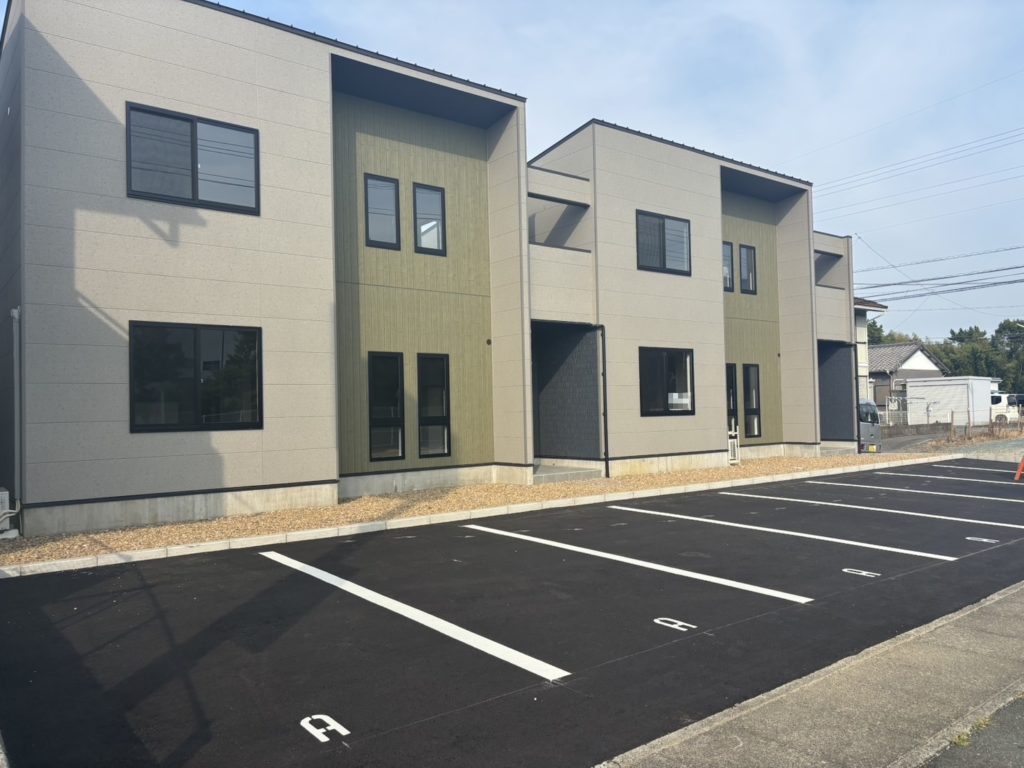 施工事例 アパートの外構工事 niwadouraku 2026年4月6日 2025年11月21日 個人宅だけではなく、アパートなどの集合住宅の外構も携わらせていただいています。 縁石は土留め兼車止めとなっており、機能性がありスタイリッシュな印象です。 看板用の門柱は化粧ブロックで造りました。重厚感があり、敷地のワンポイントとなっています。 建物のイメージにもピッタリなシンプルモダンな外構に仕上がりました。